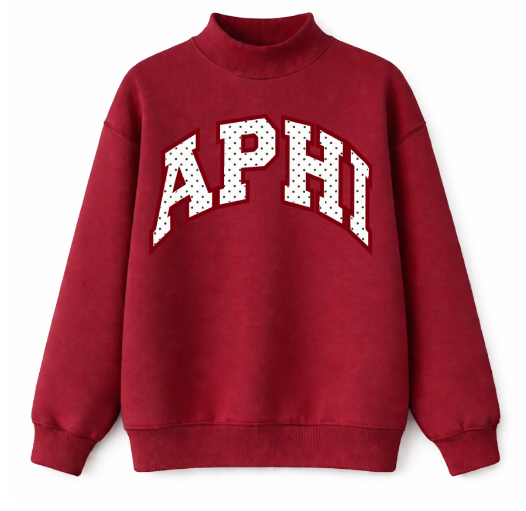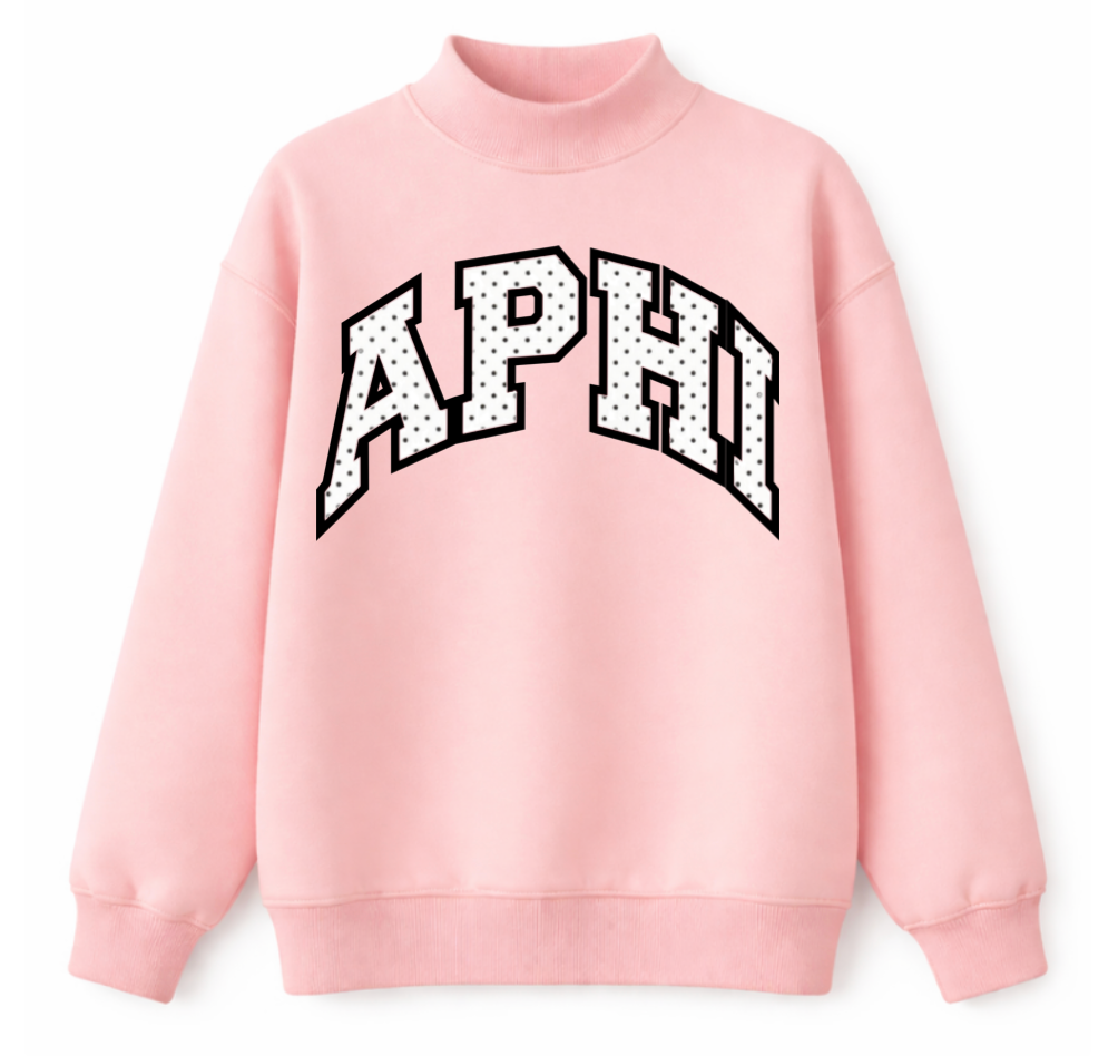 This polka dot mock is adorable for any occasion! Available in any sorority ! White fabric with black polka dots available in a light pink or maroon mock !