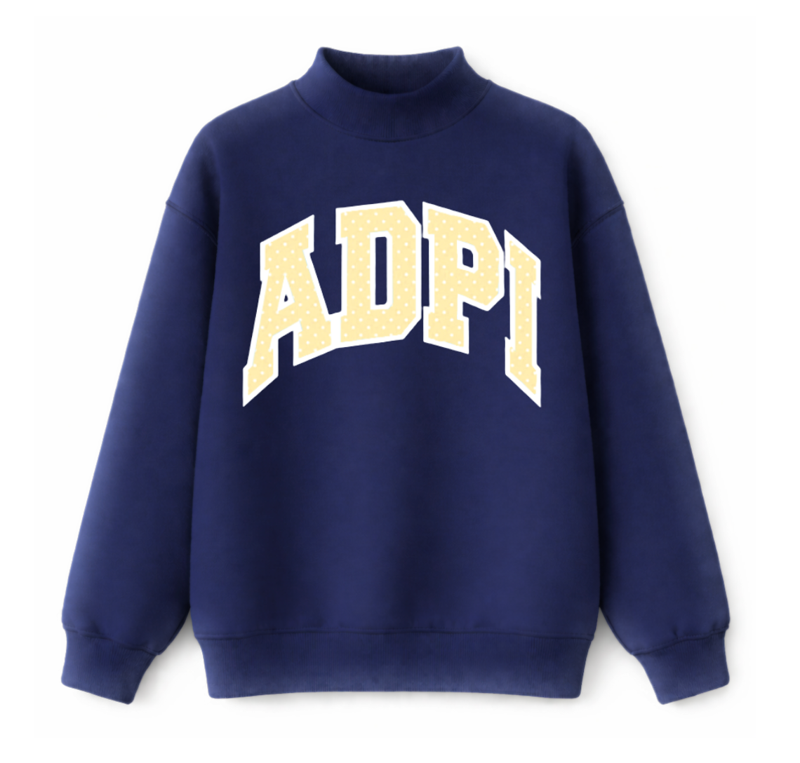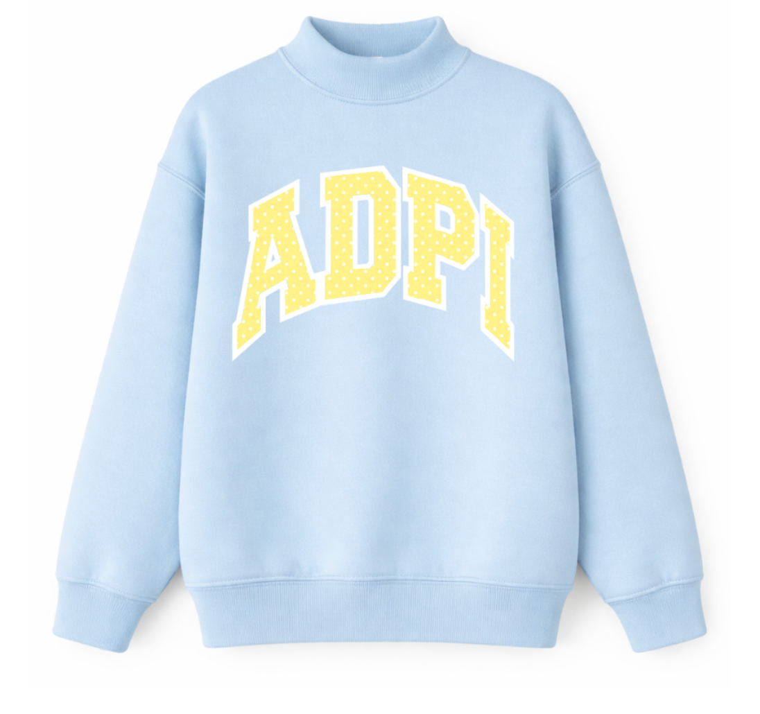 This polka dot mock is adorable for any occasion! Available in any sorority ! Yellow fabric with white polka dots available in a light blue or navy mock !